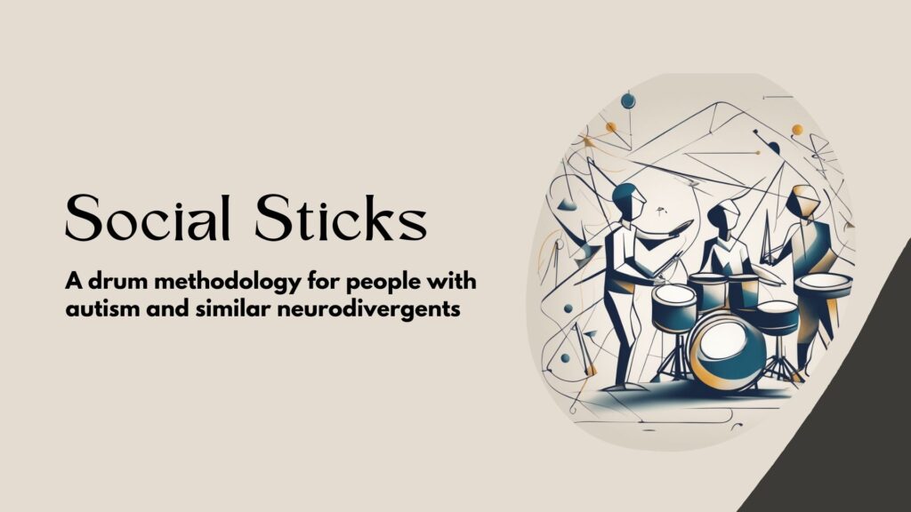 Guy developed a drum methodology especially for people with autism and similar neurodivergents: Social Sticks. Research has shown that there is a strong link between the development of motor skills and the development of social skills, and playing the drums has shown to be an excellent medium to achieve improvement in social and cognitive domains. Guy’s methodology is focussed on following the intrinsic motivation of the people he teaches. It’s mostly non-verbal, and playful. Anyone with ASD, ADHD or similar neurodivergents who find themselves struggling with social skill and want to work on this can apply for coaching sessions. The methodology is being used at schools and care facilities, but also companies can book sessions to help their employees with struggles around social skills.